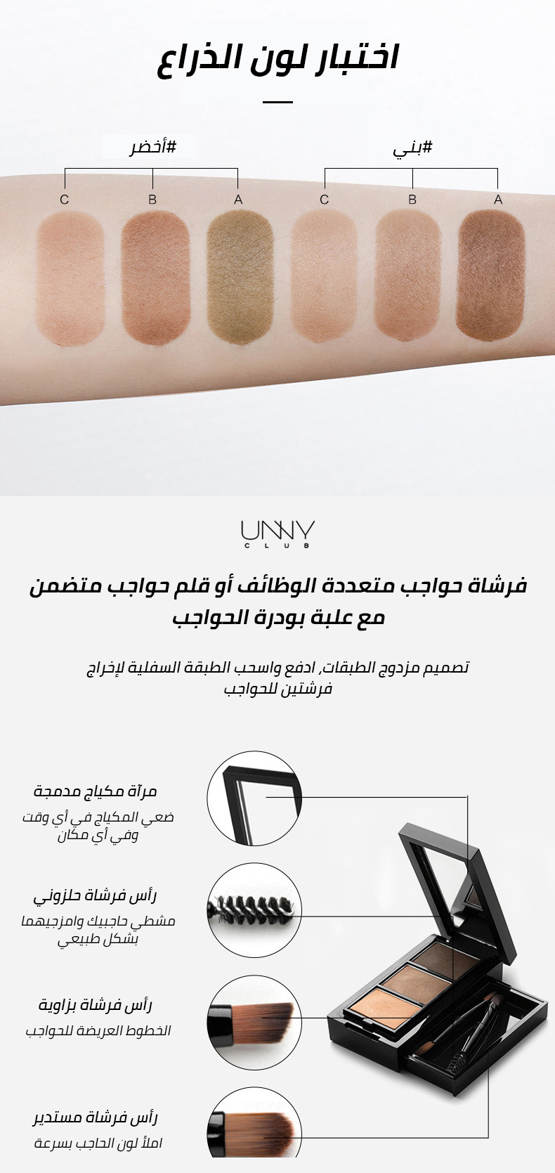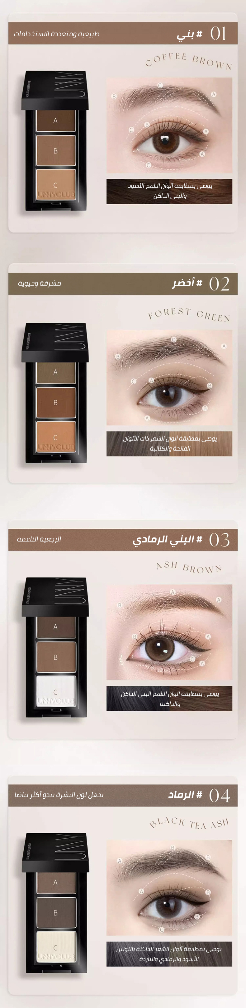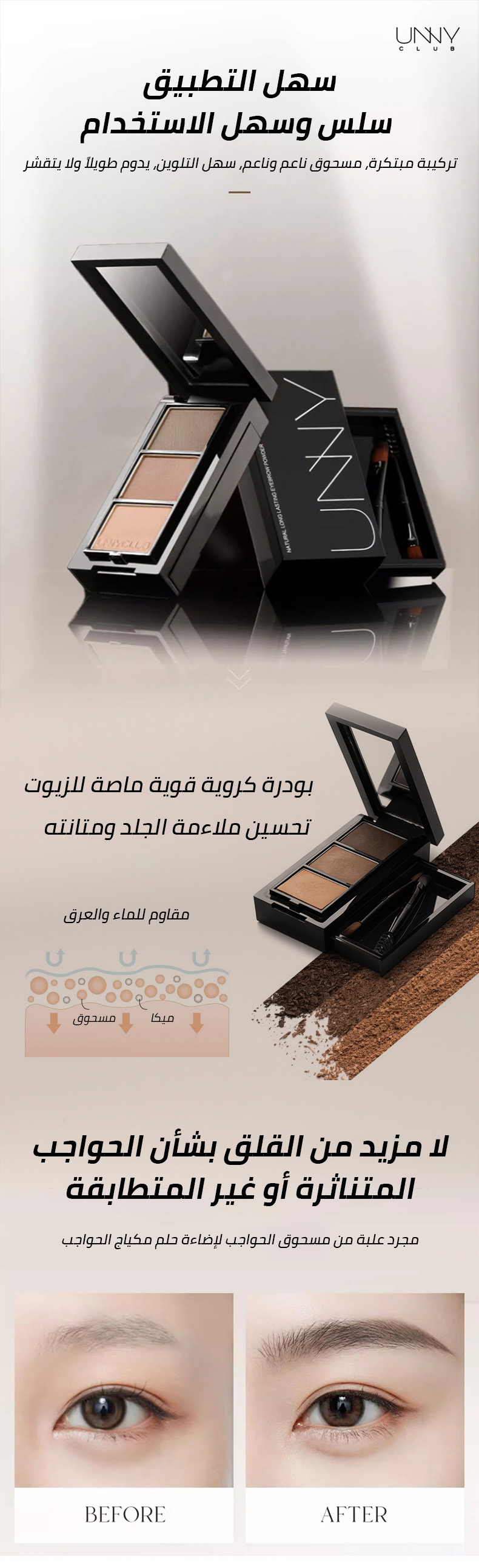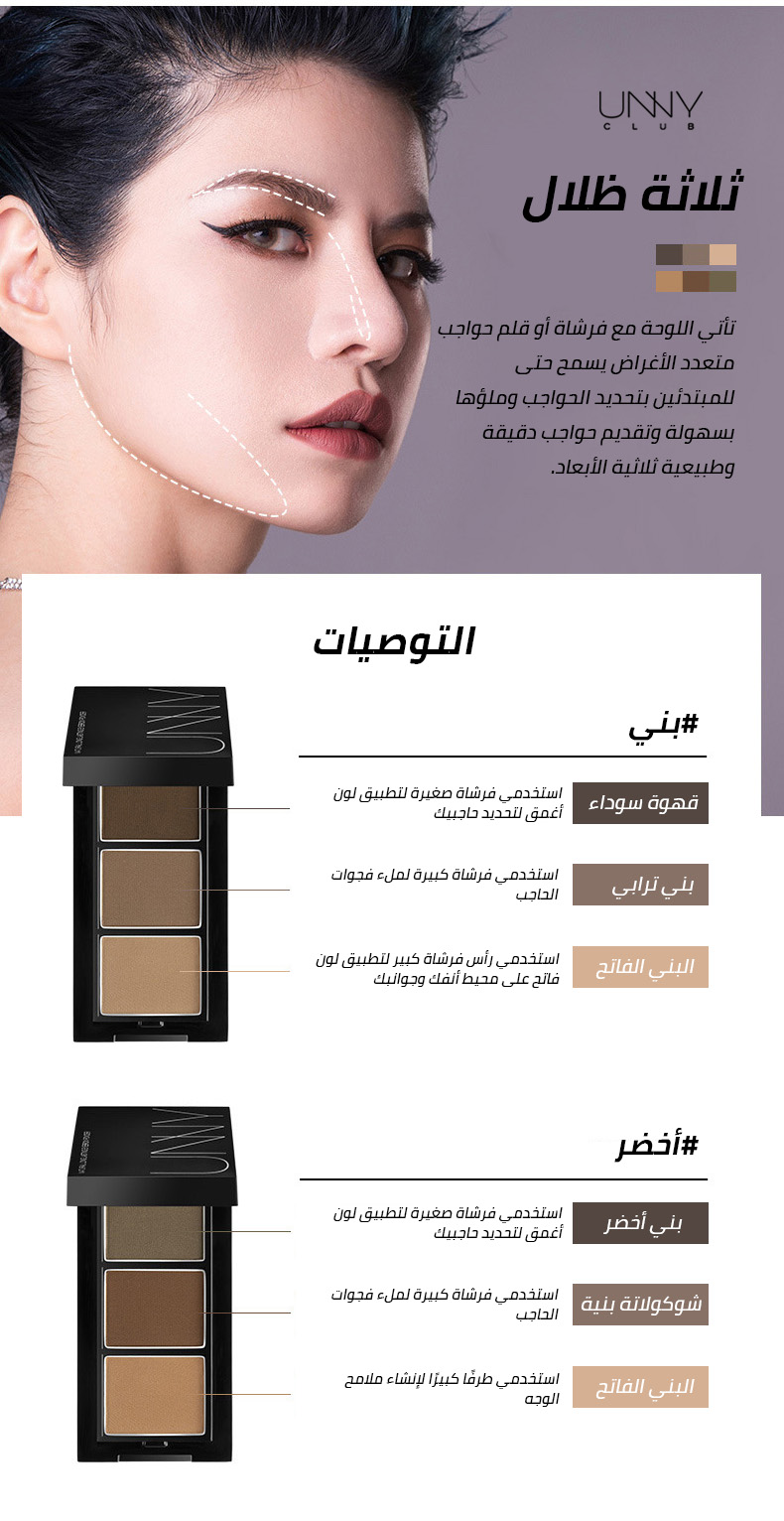 مجموعة بودرة الحواجب المقاومة للماء بثلاثة ألوان